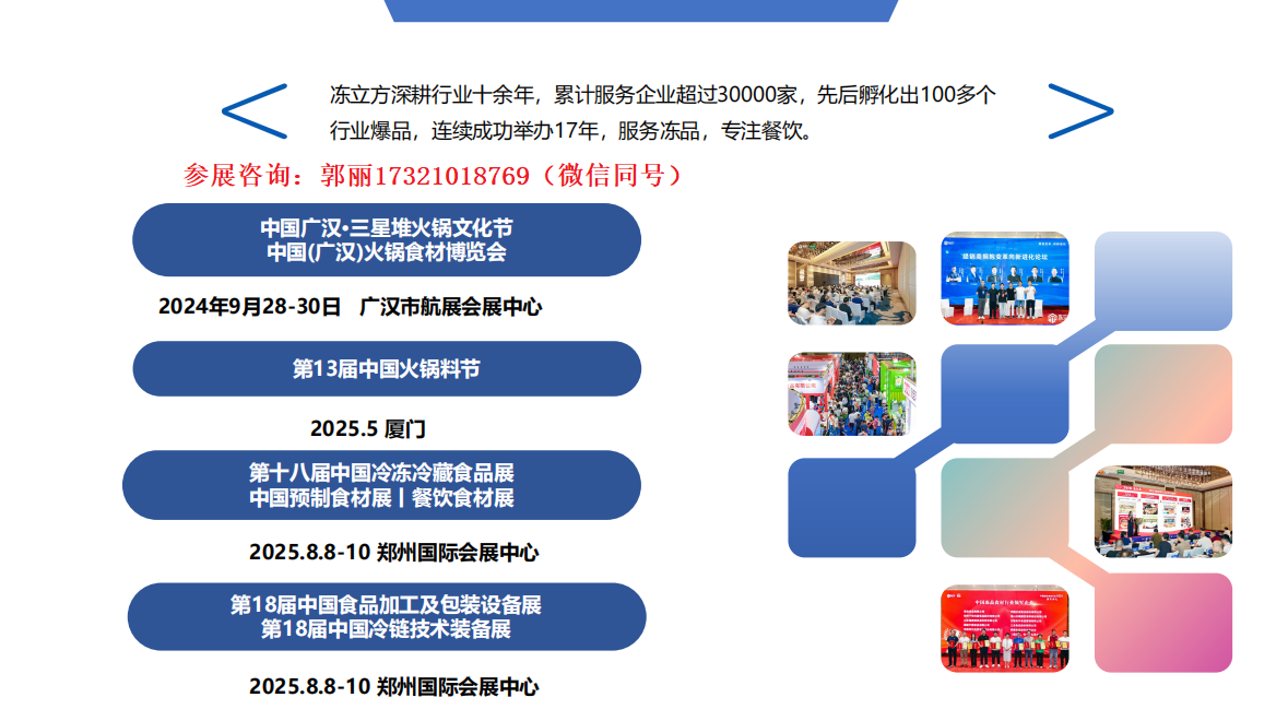 凍立方·中國(鄭州)冷凍冷藏食品展(以下簡稱:凍立方凍品展),作為國內舉辦屆數多,年份久的冷凍食材專業會展活動,也將于8月8日-10日在鄭州國際會展中心如期舉辦。本屆展會規模達4萬+平方米,600+品牌展商,5000+展品類,展覽+會議雙模式,助您洞察商機、穩拓業務、實現信息精準推送、產品曝光,品牌突圍!