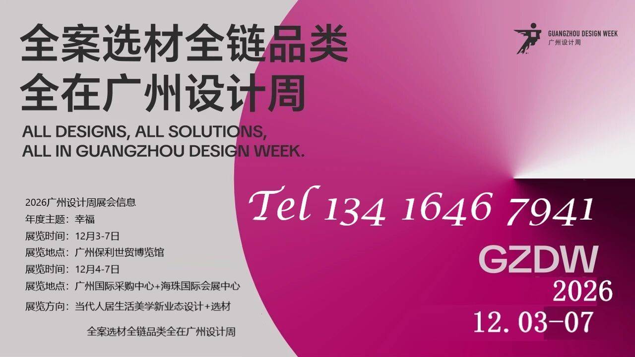2026廣州設計周展會-年度主題為“幸福”,展覽方向聚焦“當代人居生活美學新業態的設計+選材,全案選材全鏈品類全在廣州設計周”,展覽規模達18個展館,有來自全球超20+國家的逾1000+家參展品牌和機構,遵循“外裝—內裝—后裝”邏輯,系統覆蓋從“戶外花園庭院、精造工法技藝、智裝風水電氣、面層裝飾材料、入戶安防門窗、全屋定制家居、全屋家具、軟裝燈光、家居用品、藝術信物、家政服務、優雅生活方式”的人居全案選材全鏈品類,以及40+超級策展項目聯合展出,涵蓋設計/文創/藝術/潮流/智能/軟裝/材料/高定/生活方式等領域,當屬亞洲設計產業第一規模大展。