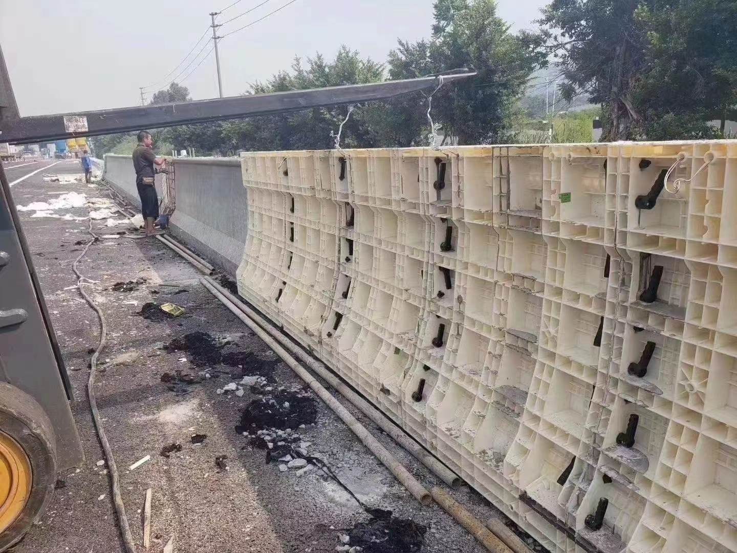 • 脫模簡便,免脫模劑板面不粘混凝土,自動脫離、易清理,省脫模劑與人工。