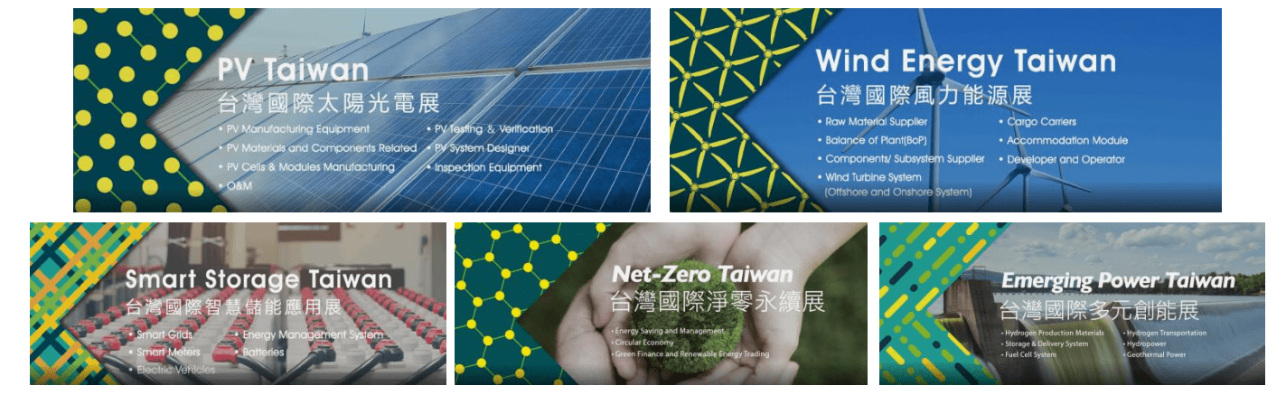 臺灣國際智慧能源周展覽會由中國臺灣對外貿易發展協會和SEMI共同舉辦,展會展覽面積達到20000平米,參展商數量及參展品牌達到200+。 Energy Taiwan是臺灣規模最大的太陽能展覽會,整合外貿協會與SEMI在展覽與國際營銷的專業經驗和產業資源,提供業界最具效益的采購平臺;搭配國際論壇、新產品發表會等豐富高階聯誼活動,同時匯集全球太陽光電產業高階主管,是拓展人脈的最佳場合;與業界重要決策者交流分享展望末來,讓您更加了解太陽能光電產業與市場趨勢,是不可錯過的臺灣太陽光電產業年度盛會。2022年展覽記錄創歷年新高,為期三天的展會共吸引19,487名相關業者參觀,較上屆增長25%。