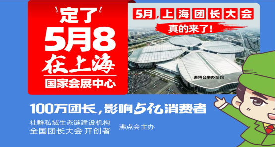 上海團(tuán)長大會(huì),又叫第6(+1)屆全國團(tuán)長展會(huì),是社群私域生態(tài)鏈建設(shè)機(jī)構(gòu):沸點(diǎn)會(huì),在(3月)第6屆杭州全國團(tuán)長大會(huì)與(8月)第7屆廣州全國團(tuán)長展會(huì)二場年度大會(huì)中間增加的一場(5月)上海團(tuán)長展會(huì)。